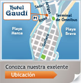 Ubicado junto a la Terminal de ómnibus, en una zona de sencillo acceso y fácil estacionamiento, el hotel Gaudí ofrece una comodidad única tanto a quienes llegan a Punta del Este por carretera en transporte nacional o internacional, como a quienes deseen desplazarse desde allí a La Barra u otros lugares cercanos de gran atractivo turístico.